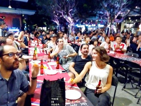 At Maji Square’s indoor plaza on Saturday night, the gourmet restaurant section was fully packed with several hundred diners and spectators watching the France vs Australia and Argentina vs Iceland matches on four large-screen TVs.