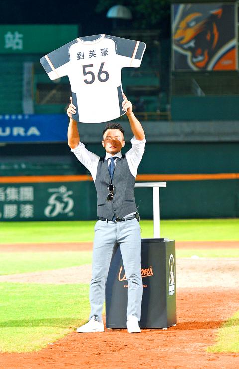 The Uni-President Lions on Saturday gave star outfielder Liu Fu-hao an exuberant send-off, retiring his No. 56 playing shirt after Liu played his final game for the Lions, a 5-4 victory at home over the Brothers Baseball Club.