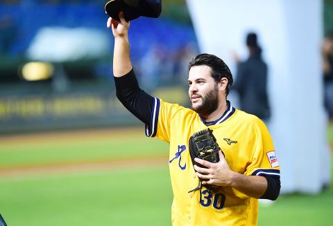 The right-hander from Florida showed his skill as he sailed through nine innings on 10 strikeouts, allowing only two Lamigo Monkeys to get on base, one on a hit and one on a walk.