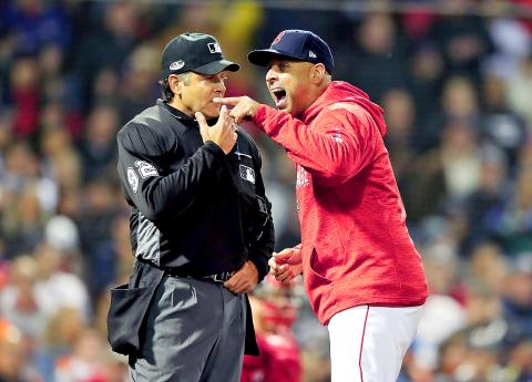 Boston Red Sox manager Alex Cora was ejected on Saturday night from Game 1 of the American League Championship Series (ALCS) against the Houston Astros at Fenway Park for arguing balls and strikes.