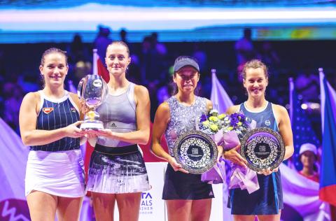 Top-ranked Ash Barty yesterday won the WTA Finals trophy, beating defending champion Elina Svitolina in straight sets, while Taiwan’s Hsieh Su-wei and Barbora Strycova won their semi-final in the doubles, but fell in the final yesterday to Timea Babos and Kristina Mladenovic.