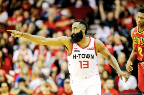 James Harden on Saturday tied Michael Jordan for the third-most 60-point performances in NBA history as the Houston Rockets blasted the Atlanta Hawks 158-111.