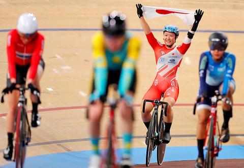 Olympic omnium champion Laura Kenny, recovering from a broken shoulder, crashed heavily in the opening scratch race, which Kajihara won — the 22-year-old never looked back.