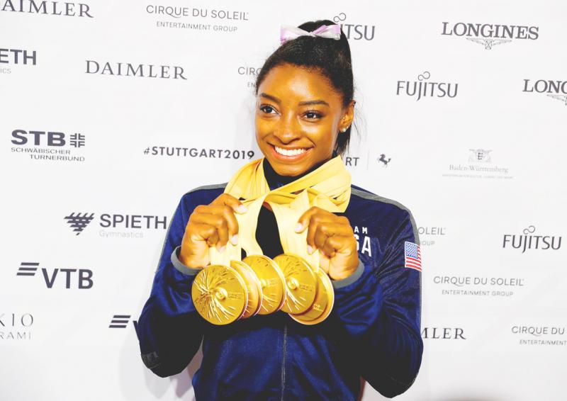 Biles won all-around, vault, floor and team gold at the 2016 Rio Olympic Games, and owns five all-around world titles among the 19 world titles that she has won since 2013.