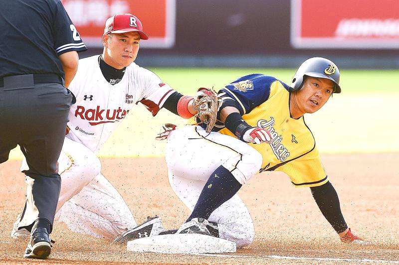 Rakuten continued the assault, putting two runners on base on a walk and a single, before third baseman Liang Chia-rong saw a fly ball drop in the outfield for a single that brought the two runners home.