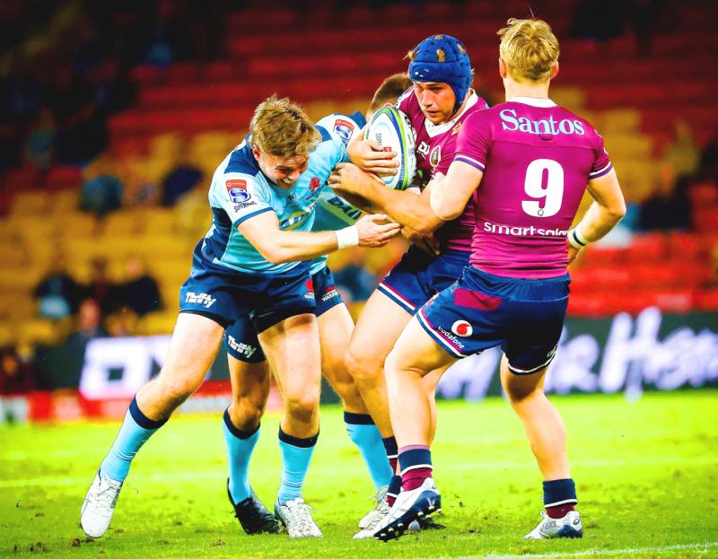 The Reds dominated early, surging to a 19-7 lead before the half-hour mark when scrumhalf Tate McDermott punished a dozy Waratahs defense by taking a quick tap and bounding over.