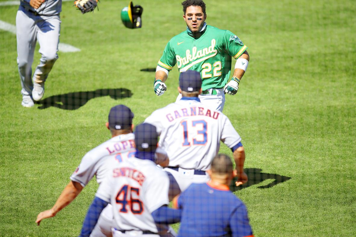 Laureano was hit three times by Houston pitchers during the weekend series, including twice by Castellanos on breaking pitches. Laureano sarcastically motioned to Castellanos on how to properly throw his slider after Sunday’s plunking.