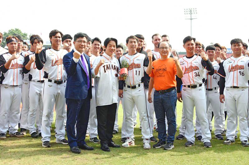 Vice President William Lai yesterday visited a Uni-President Lions practice at the Tainan Municipal Stadium, as the team prepare for tomorrow’s Taiwan Series opener against the CTBC Brothers in Taichung.