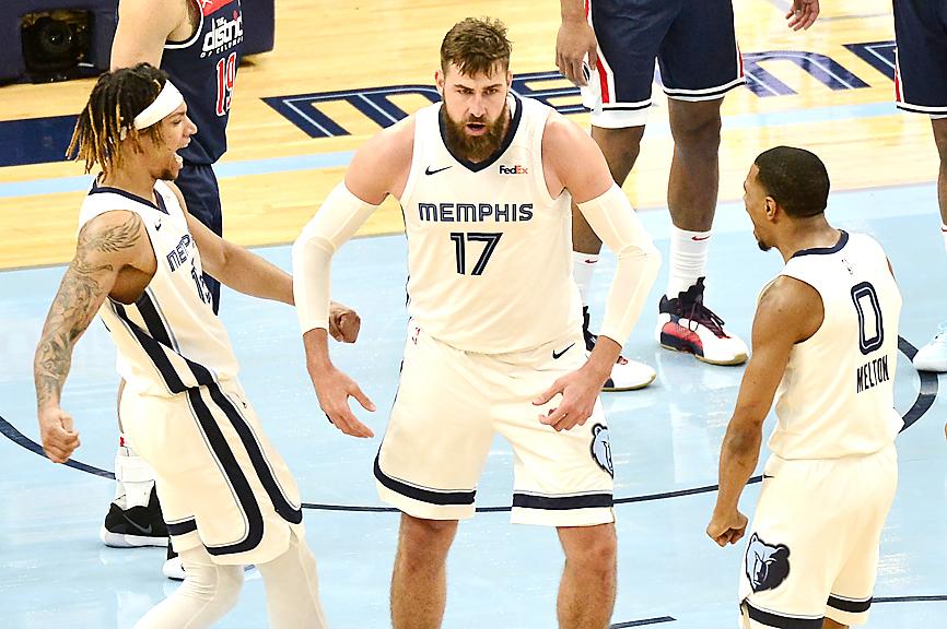 Rookie Desmond Bane complemented the inside scoring with a season-high 20 points, going five of eight from three-point range.