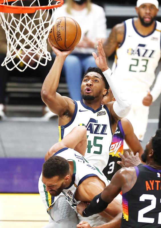 Donovan Mitchell scored a game-high 41 points for the Jazz. Mitchell forced the overtime with a key three-pointer late in regulation time in front of the crowd of 5,100 at the Phoenix Suns Arena.