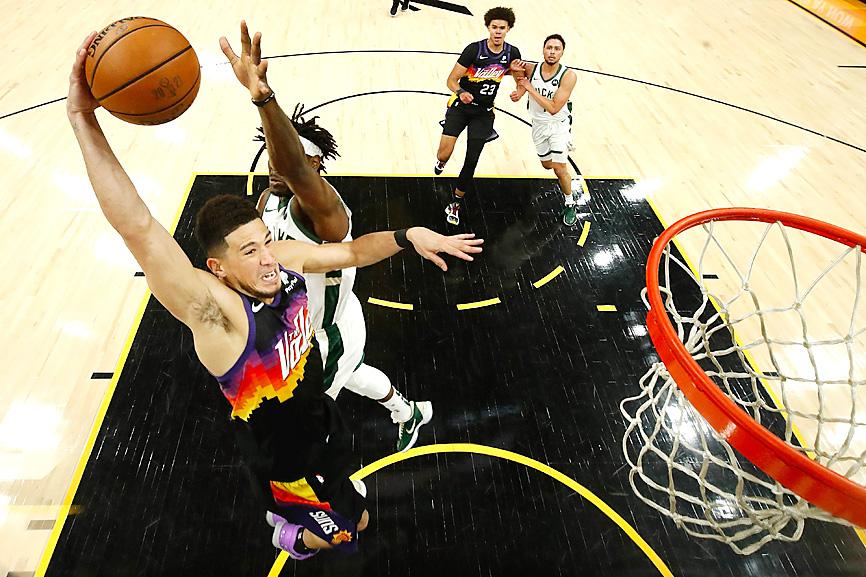 The Bucks closed within 93-88, but an Ayton layup and back-to-back three-pointers by Booker gave the Suns a 101-88 edge with 7:18 remaining.