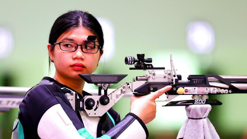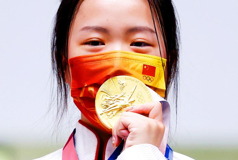 Chinese shooter Yang Qian yesterday won the first gold medal of the Tokyo Olympics as the Games braced for a potentially disruptive tropical storm heading toward the Japanese capital.