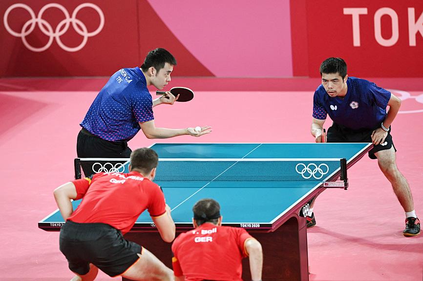 In Taiwan’s first match yesterday, Chuang and Chen Chien-an lost 0-11, 6-11, 6-11, 10-12 to Patrick Ranziska and Timo Boll of Germany.