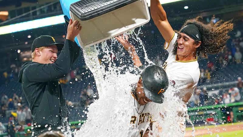 Ke’Bryan Hayes completed a two-run comeback by sending a pitch from Washington reliever Alberto Baldonado to right field, scoring Ben Gamel from third for the first walk-off hit of his career.
