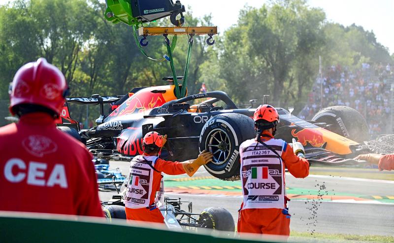 Daniel Ricciardo won the Italian Grand Prix on Sunday as Max Verstappen was blamed by the Monza stewards for a dramatic airborne crash with Lewis Hamilton, who said his car’s halo safety device “saved my neck.”