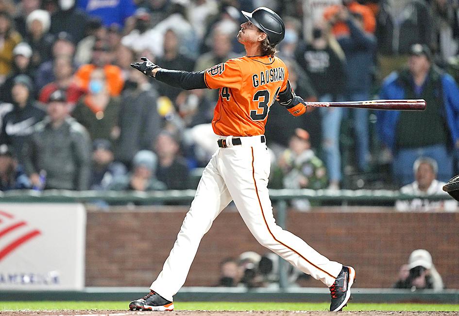 Instead, Gausman hit a flyball to shallow right field and Brandon Crawford beat the throw home with a head-first slide.