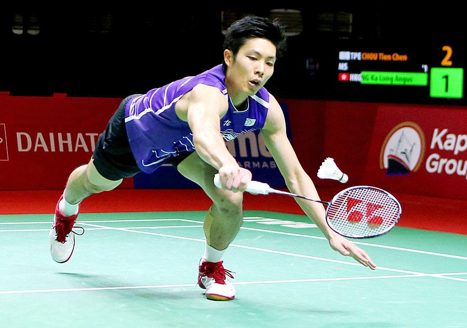 Chou Tien-chen of Taiwan yesterday advanced to the semi-finals at the Indonesia Masters with a 2-1 win over Hong Kong’s Angus Ng Ka-long.