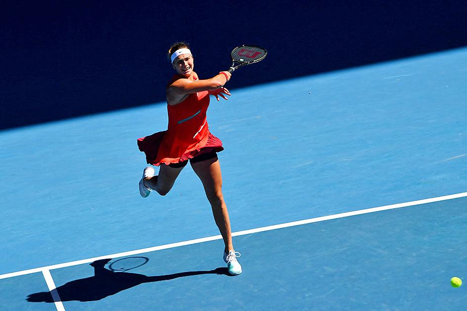 Aryna Sabalenka yesterday said that she tried to “stop thinking” about her serve and it worked well, with the world No. 2’s woeful double fault count improving as she stayed in contention at the Australian Open.