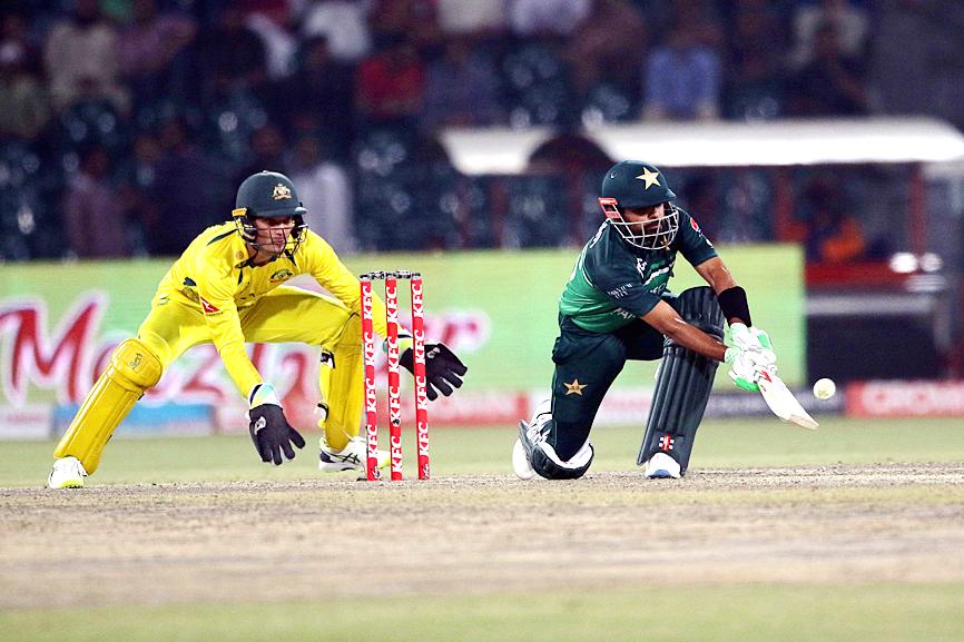 He added 80 for the third wicket with Mohammad Rizwan before he was caught off Nathan Ellis with 40 needed off 34 balls.