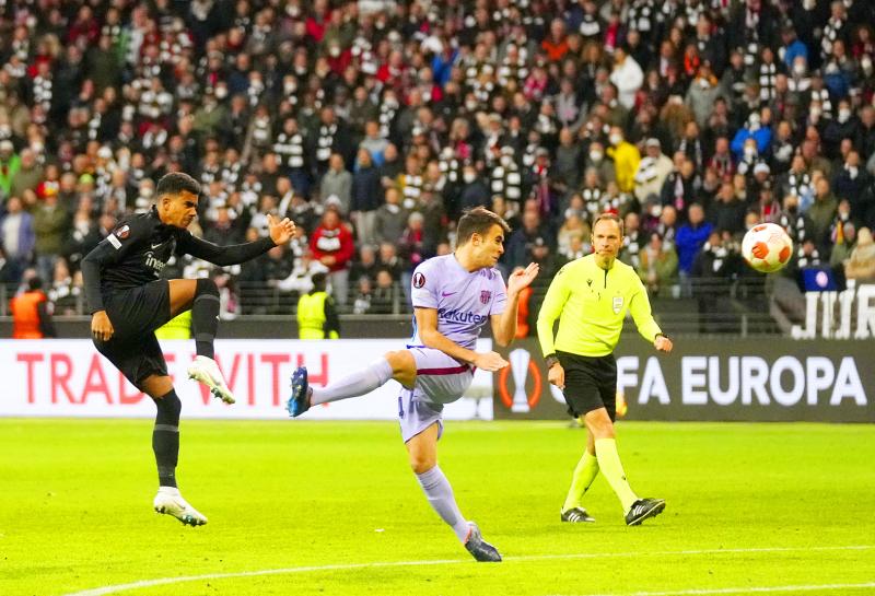 Frankfurt were reduced to 10 men for the final 12 minutes when Tuta picked up a second booking for a mistimed challenge on Pedri.