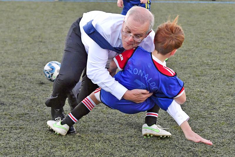 Politicians are meant to kiss babies, not crash into children, but on the campaign trail yesterday, Australian Prime Minister Scott Morrison barrelled into a young boy during a friendly kickaround, eliciting a chorus of stunned “ooohs” and “aaaws” from spectators.