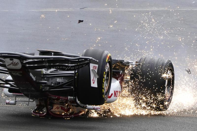 The start was marred by a massive high-speed multicar collision, which saw Zhou Guanyu make a remarkable escape after his Alfa Romeo was catapulted upside down, with the Chinese rookie’s head saved by the roll hoop-halo protection system, as it skidded off across a gravel trap and over tire barriers into the catch fencing, where it bounced back to finish semi-upright in a stationary position.