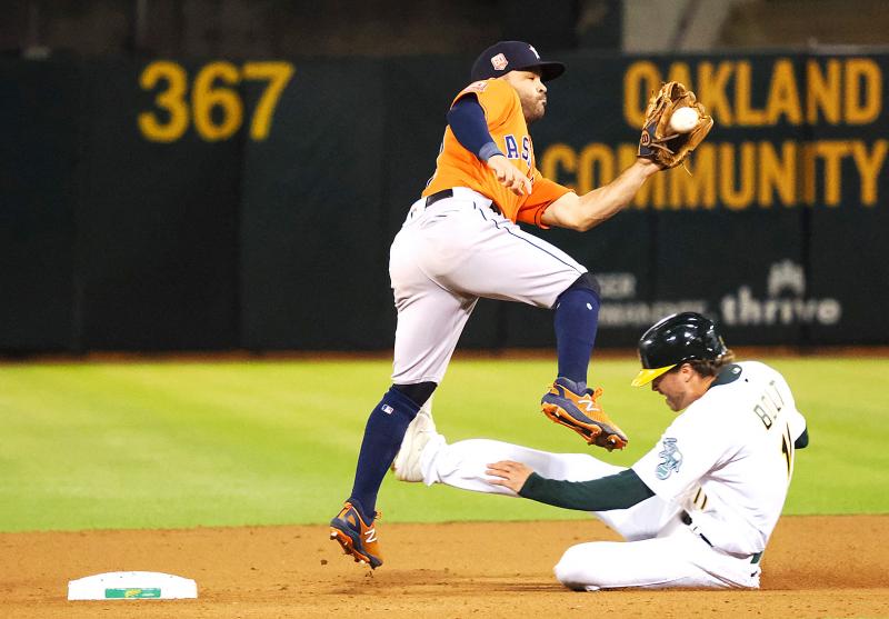 Elvis Andrus added an insurance RBI single in the eighth for Oakland before closer Trivino surrendered a solo homer to Chas McCormick, then finished for his ninth save by striking out Jeremy Pena with runners on first and second.