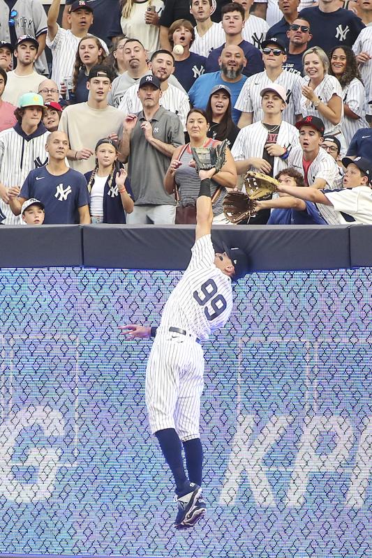 The 2m Judge began the game by reaching over the right-field fence to rob M.J. Melendez of a homer, then hit a two-run shot in the third inning. It was his second homer in three at-bats after he hit a game-ending drive in the ninth inning of a 1-0 win against Kansas City on Thursday.