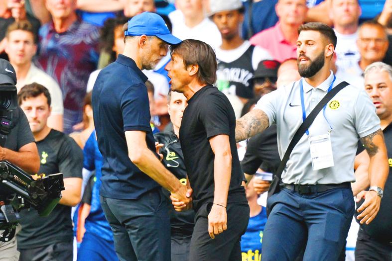 Coaches Antonio Conte and Thomas Tuchel were sent off after the full-time whistle for their second physical altercation of the match.