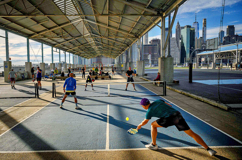 On a recent weekday evening at the foot of the Brooklyn Bridge, dozens of players ranging from thirty-somethings to retirees shared the four new courts at Brooklyn Bridge Park, which recently replaced the bocce ball courts.