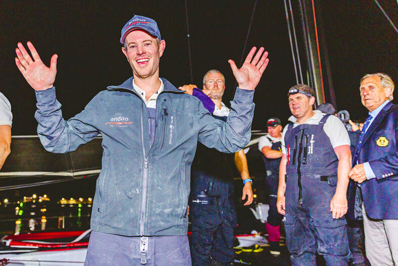 Andoo Comanche crossed in 1 day, 11 hours, 56 minutes, 48 seconds — about 20 minutes in front of rival supermaxi Law Connect — and just under three hours short of its own record.