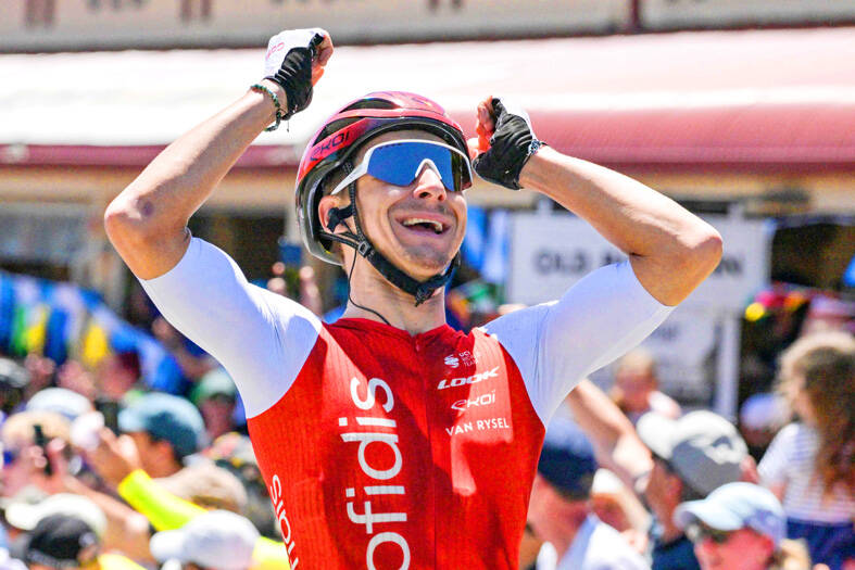 The lightweight Coquard (Cofidis) dashed to the front in Willunga’s main street to sprint away with the penultimate stage over 133.2km from Italy’s Alberto Bettiol (EF Education EasyPost) and France’s Hugo Page (Intermarche Circus Wanty).