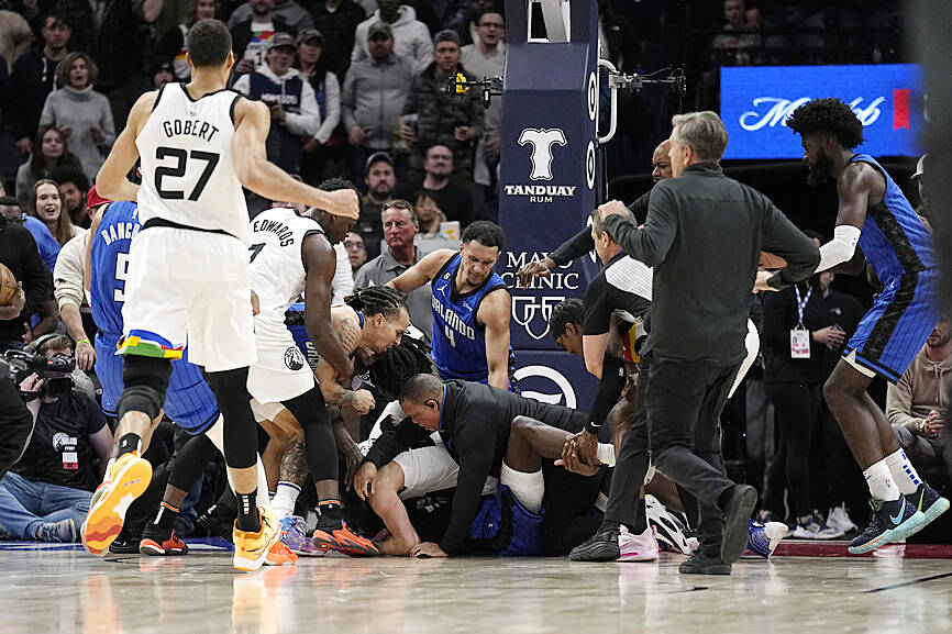 The brawl broke out in front of the Orlando bench late in the third quarter when Minnesota guard Austin Rivers and Magic center Mo Bamba got into an altercation. Bamba came off the bench and Rivers threw punches at him in a tussle that spilled over to include several others on the court.