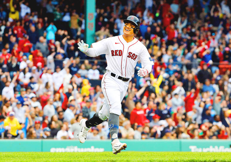 Taiwanese baseball star Yu Chang on Saturday snapped a 0-for-28 drought with a two-run homer and delivered a go-ahead, two-run single after the Los Angeles Angels’ Matt Thaiss was called for his second catcher’s interference (CI) in the eighth inning, lifting the Boston Red Sox to a 9-7 comeback win.