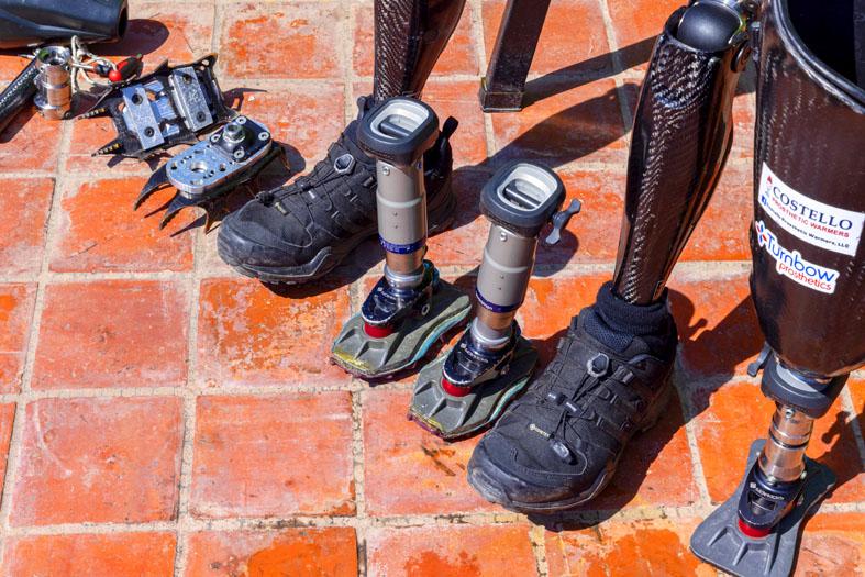 He climbs wearing a specially designed suit and grips attached to shortened prosthetics, with silicon liners under his thighs to prevent frostbite.