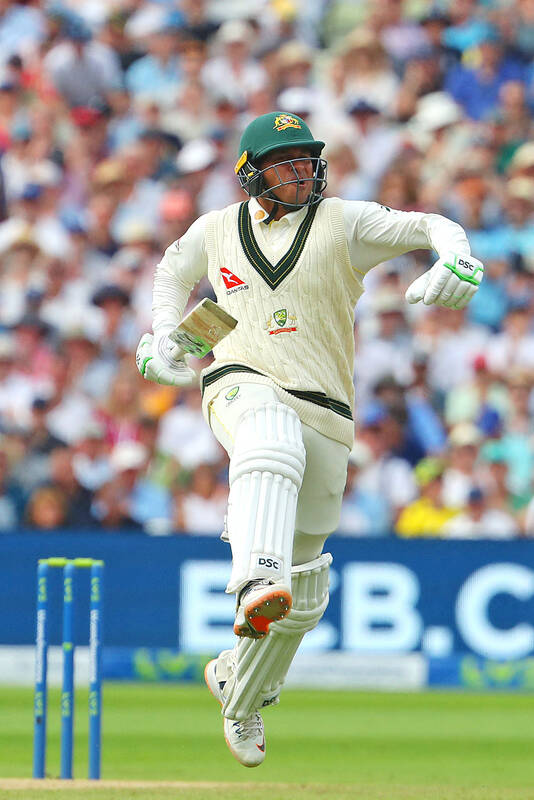 Opener Usman Khawaja raced away in delight and threw his bat high into the air on Saturday after scoring his first Test century in England as Australia made 311-5 on day two of the Ashes at Edgbaston.