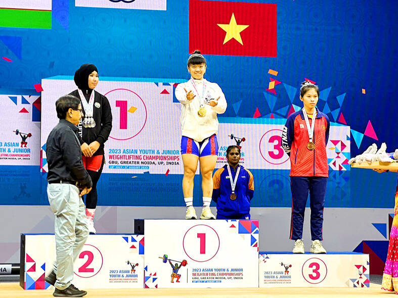 Ten Taiwanese athletes are competing at the tournament in India, which started on Friday and ends on Saturday. Huang Yi-chen last week won a bronze medal in the women’s 49kg division with a clean and jerk lift of 95kg.