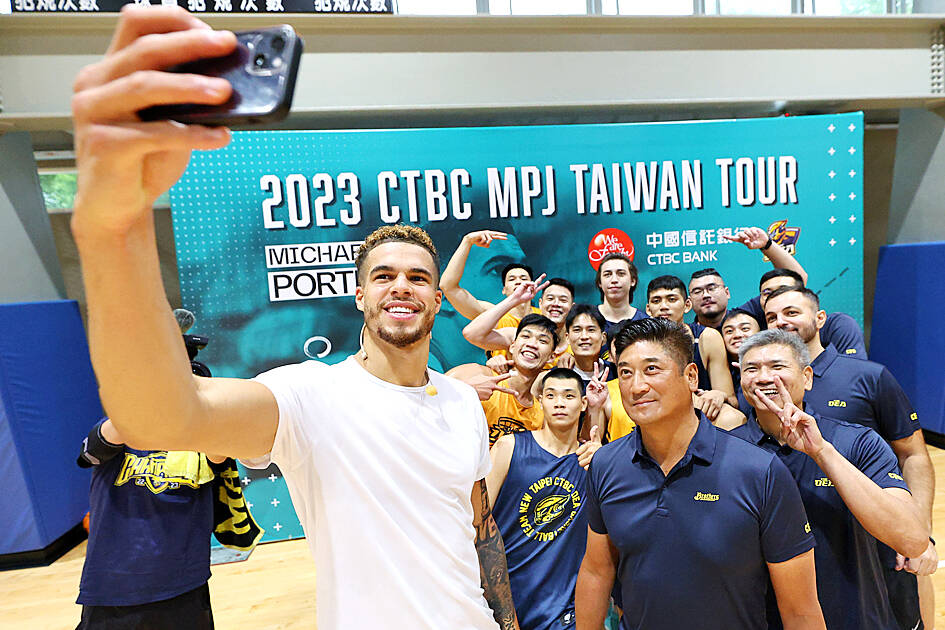 Professional US basketball player Michael Porter Jr (MPJ) of the National Basketball Association’s (NBA) Denver Nuggets, who cinched the championship this year, arrived in Taiwan on Wednesday at the invitation of CTBC Bank.