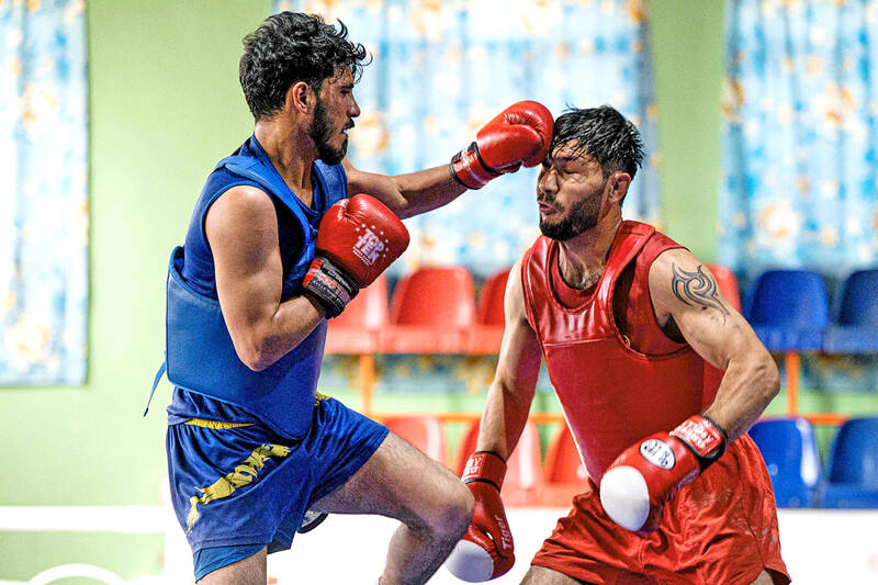 Wushu fighter Khalid Hotak sweats in his chest padding as he spars with a teammate in a Kabul gym, defying financial worries to prepare for the Asian Games as best he can.