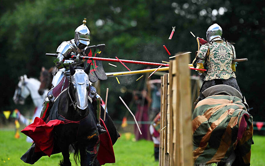At an 11th-century castle off the coast of southern England, two knights in suits of shining armor charge at each other on horseback at top speed, wooden lances at the ready. To the beat of drums and the thundering of hooves, the weapons make contact and one of them splinters into pieces, sending up cheers from the watching crowd.