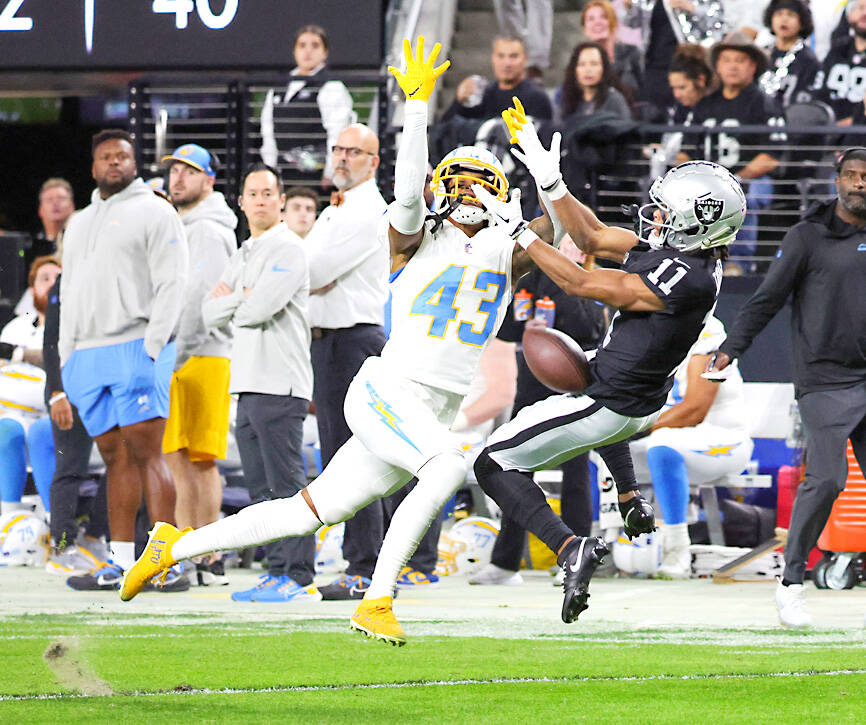 The Raiders led 63-7 early in the fourth quarter after cornerback Jack Jones intercepted Herbert’s backup Easton Stick to stroll into the end zone for a 16-yard pick six.