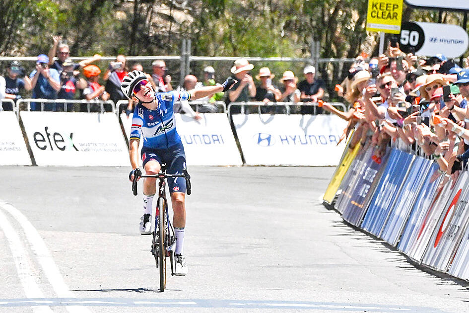 Her victory came despite struggling for position within the peloton in blustery conditions during the stage from Adelaide to Willunga Hill.