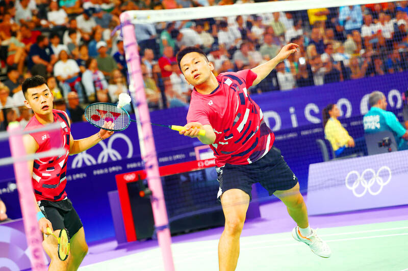 Taiwanese shuttlers Wang Chi-lin and Lee Yang yesterday made short work of the US’ Vinson Chiu and Joshua Yuan to remain undefeated in their group in the men’s doubles at the Paris Olympics, while three Taiwanese table tennis players advanced to the round of 16.