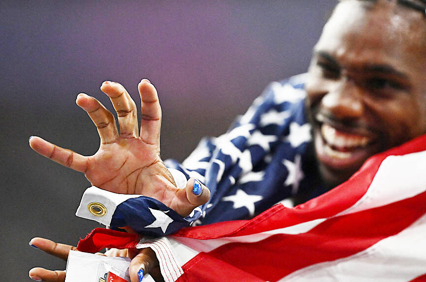 Wrapped in a US flag after the race, an over-the-moon Lyles thrust his hands forward, fingers splayed, imitating the “kamehameha” attack used to unleash a powerful burst of energy in the Japanese manga and anime franchise.