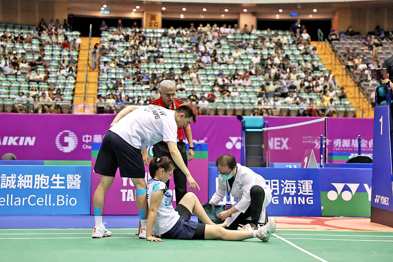 However, Lee Chia-hsin sustained an ankle sprain shortly after their semi-final began yesterday. She played out the first game, which the Taiwanese pair lost 21-19, but was forced to withdraw before the start of the second.