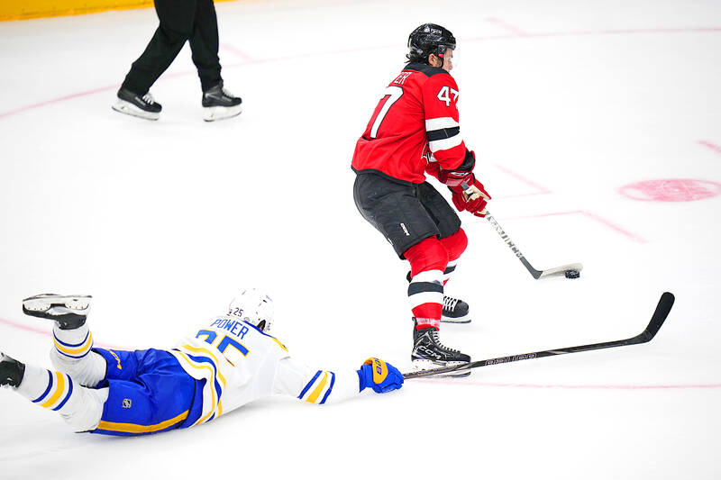 After former NHL great Jaromir Jagr, who still plays in the Czech league, dropped a ceremonial puck, Stefan Noesen became the first scorer of the season as he put New Jersey up 1-0. Defenseman Johnathan Kovacevic made it 2-0 and Nico Hischier scored early in the second period before Owen Power got the Sabres on the scoreboard midway through the third.