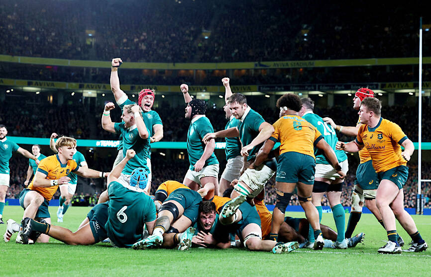 Australia’s eight-point lead at the interval was wiped out within the first five minutes of the second half as first Prendergast put over a penalty and then Doris scored a try under the post and the conversion had Ireland 15-13 ahead.