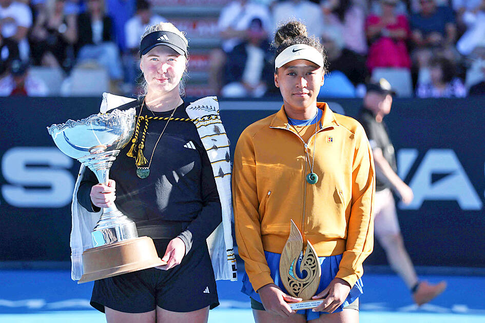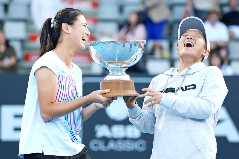 Taiwan’s Wu Fang-hsien and Jiang Xinyu of China yesterday won the women’s doubles title at the ASB Classic in Auckland, while Naomi Osaka retired from the women’s singles final with an abdominal injury.