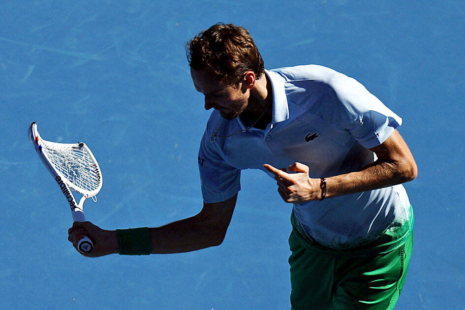 Medvedev won 6-2, 4-6, 3-6, 6-1, 6-2 on Rod Laver Arena, but not before the 28-year-old mangled his racket as he spectacularly lost his temper in the third set, slamming it into the net camera repeatedly until they both became a broken mess.