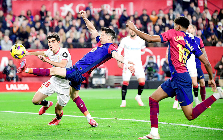 Lewandowski’s early strike was canceled out by Sevilla’s Ruben Vargas, with Lopez and Raphinha pouncing early in the second half.